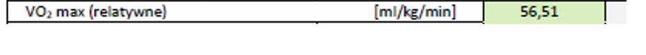 Wynik testu wydolnościowego- 56,5. Test wykonałam w centrum diagnostyki sportowej SportsLab.